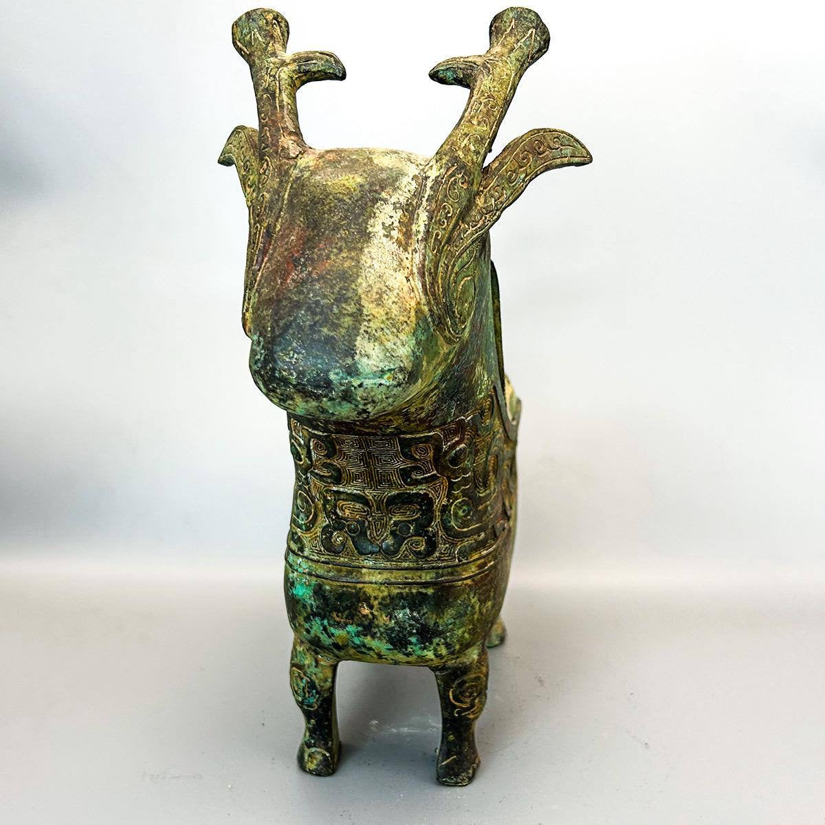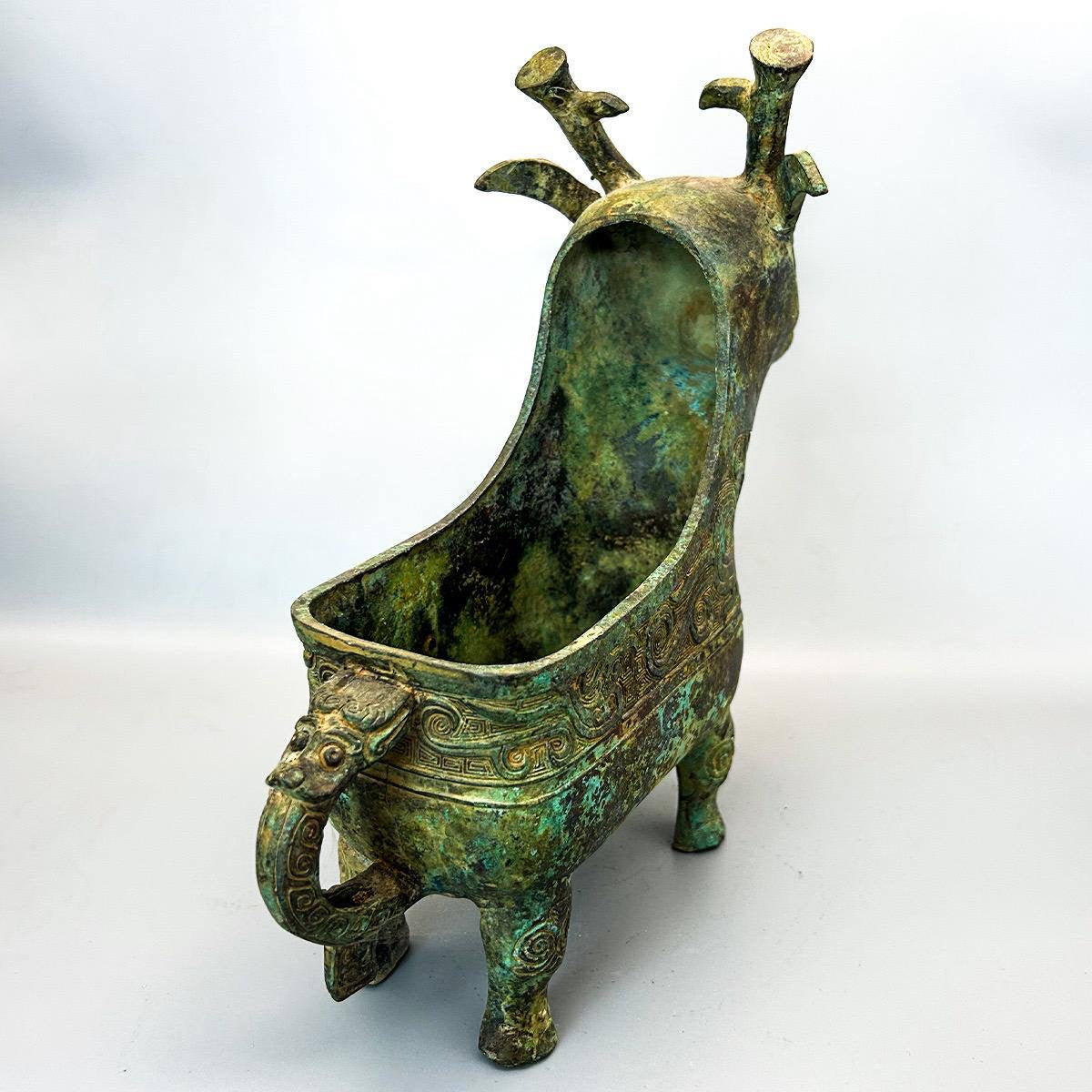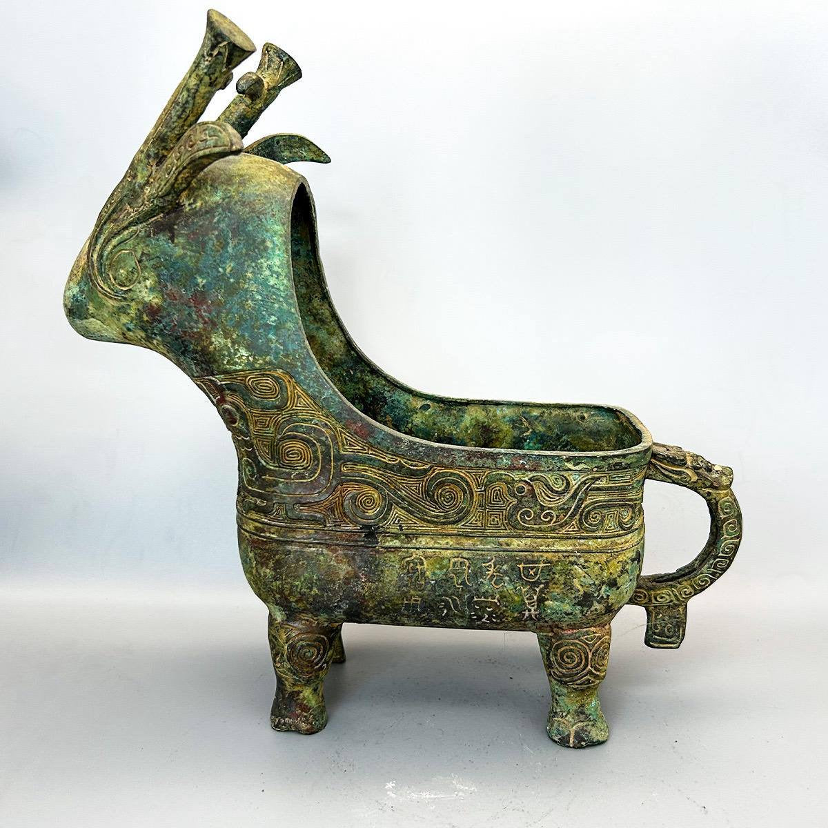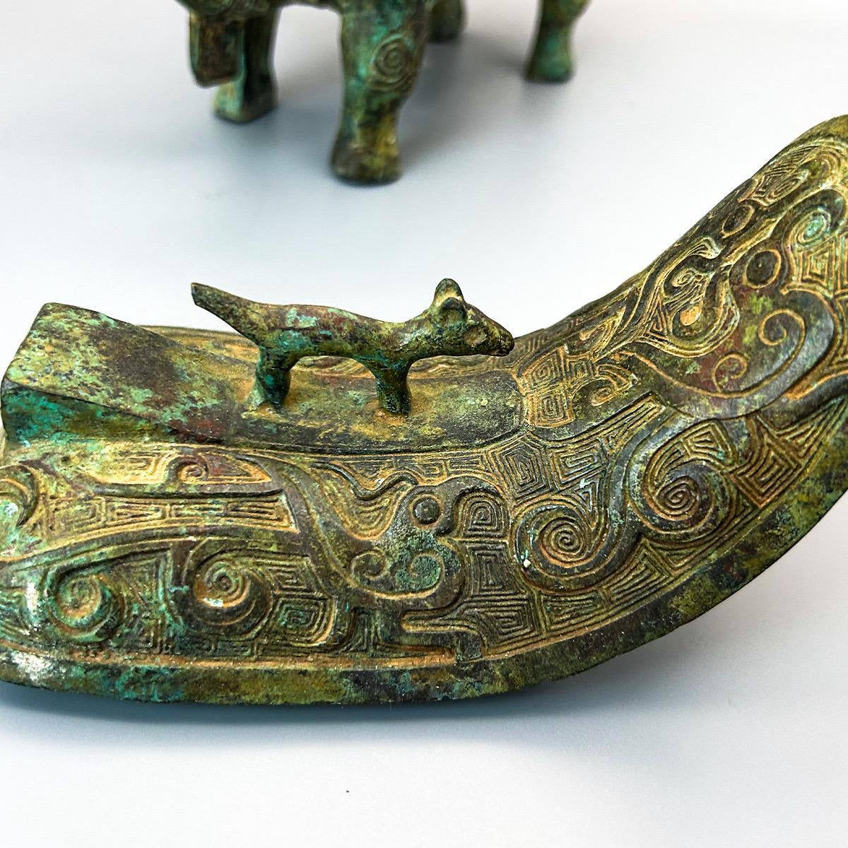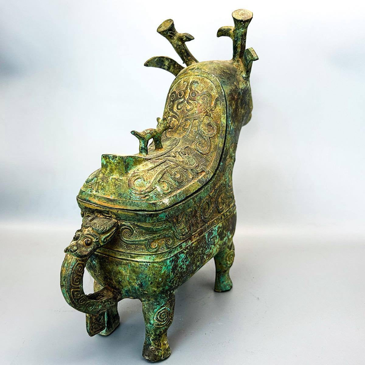 - Beautifully detailed bronze animal vessel featuring intricate carvings and an aged patina—perfect for collectors or as a striking décor centerpiece.
